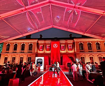丽日建筑科技为梅赛德斯-奔驰Vision Iconic概念车的全球首秀,倾力打造了一座临时却散发永恒之美的户外透明篷房,成为本次盛典的视觉焦点。
