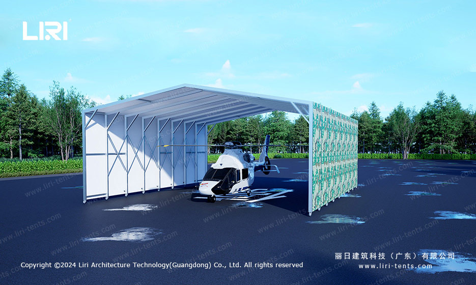 手动或电动推拉篷为直升机等小型飞机提供了便捷的停放体验。该机库采用铝合金结构,底部配有可移动滑轨和轨道。用户只需轻轻推动或借助电动辅助,即可实现室内外的快速切换,为飞机提供遮阳挡雨的保障空间。