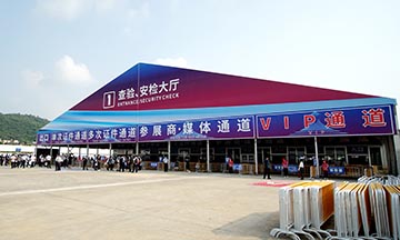 丽日大型篷房生产厂家可满足于各种不同的活动需要。超大净跨度:10m-60m,模块化结构,搭建工期短,易于组装和拆卸。可选用全系列的配件,篷布张紧系统,可印刷logo图案。