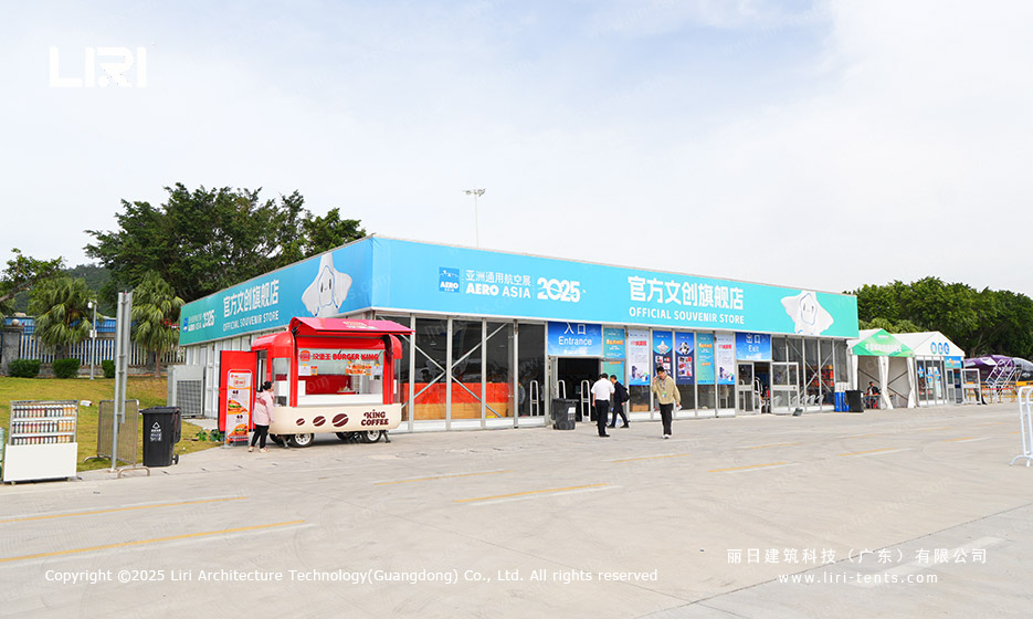 2025亚洲通用航空展(以下简称“亚洲航展”)在珠海国际航展中心成功举办。本届亚洲航展规模较往届翻倍,在开幕首日即达成837架飞机的订单。丽日建筑科技深耕航展临时空间领域28年,为本次亚洲航展量身打造了超过10,000平方米的高品质临时展览篷房。这些篷房采用先进的铝合金结构,既保障了安全性,也提升了整体视觉效果。