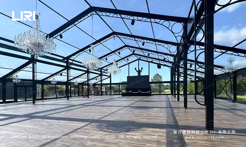 此外,黑色橘园篷房支持重复拆装,并可根据婚礼规模进行定制。多种铁艺门窗样式可自由搭配,充分满足不同婚礼规模和多样化的民族风格需求。
